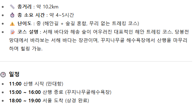 국내트레킹 일정