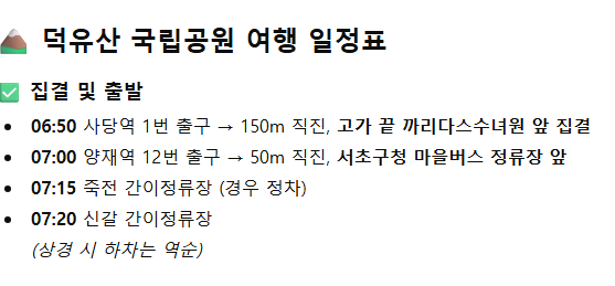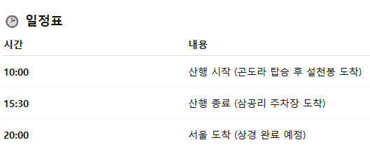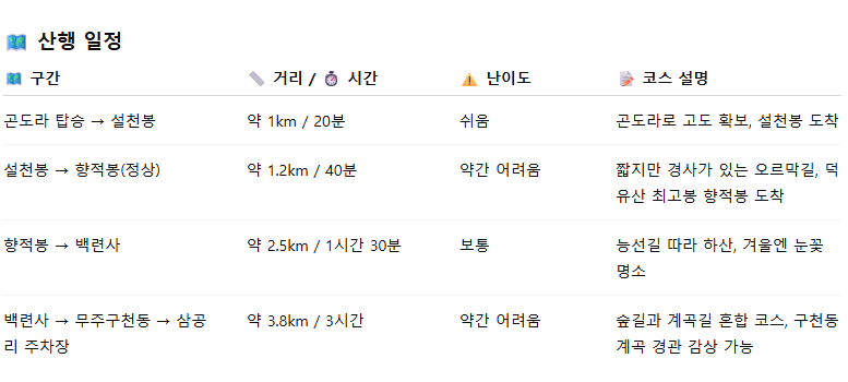 개인 구급약품, 여벌 옷, 겨울 산행 장비