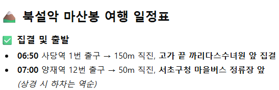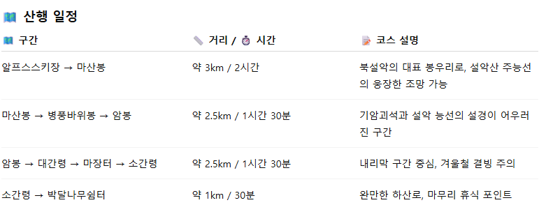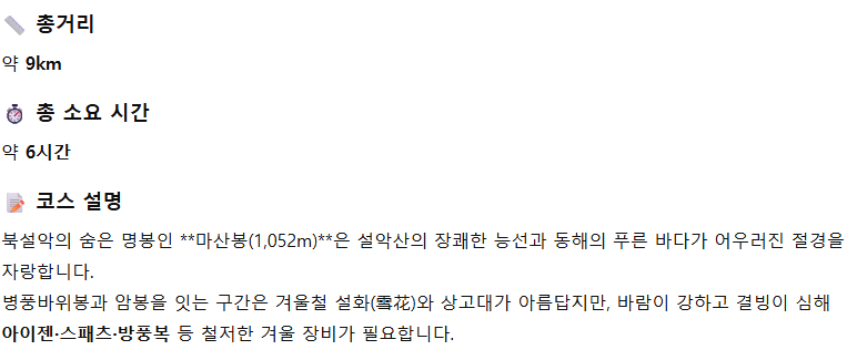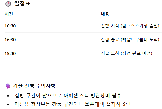 개인 구급약품, 여벌옷, 간식, 겨울 산행 장비