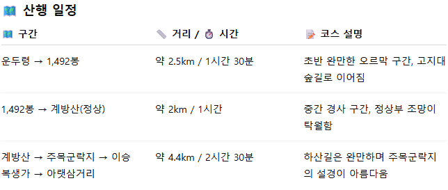 개인 구급약품, 여벌 옷, 겨울 산행준비물