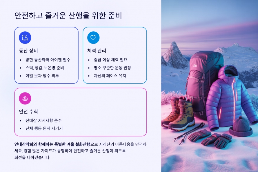 개인 구급약품, 여벌 옷, 겨울 산행 준비물