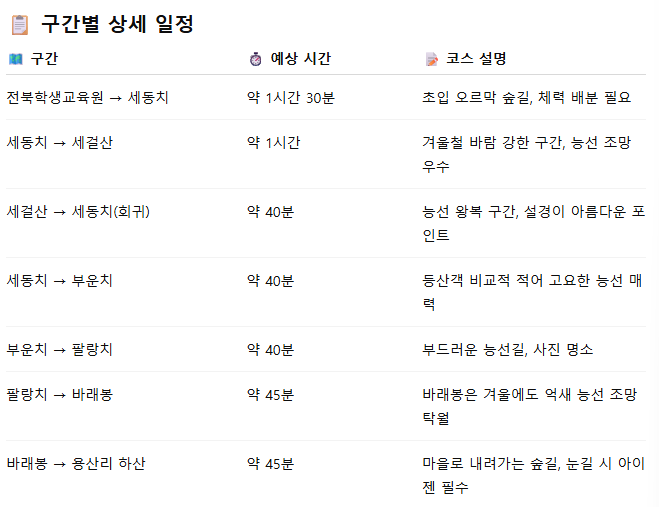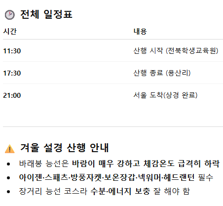 국내트레킹 일정