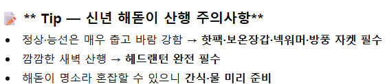 개인 구급약품, 여별 옷, 간식, 겨울 산행 준비물 |