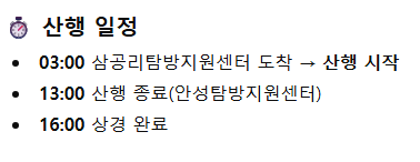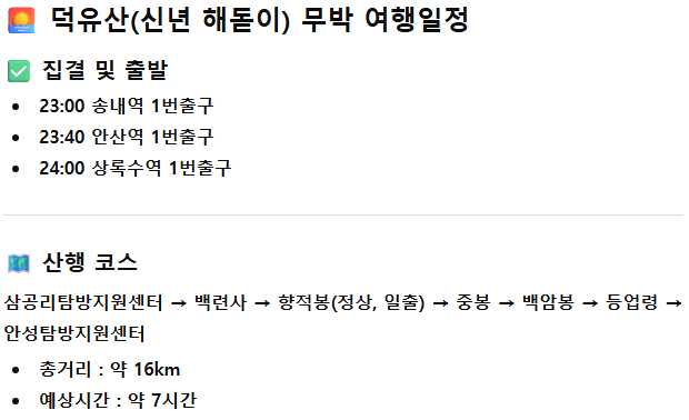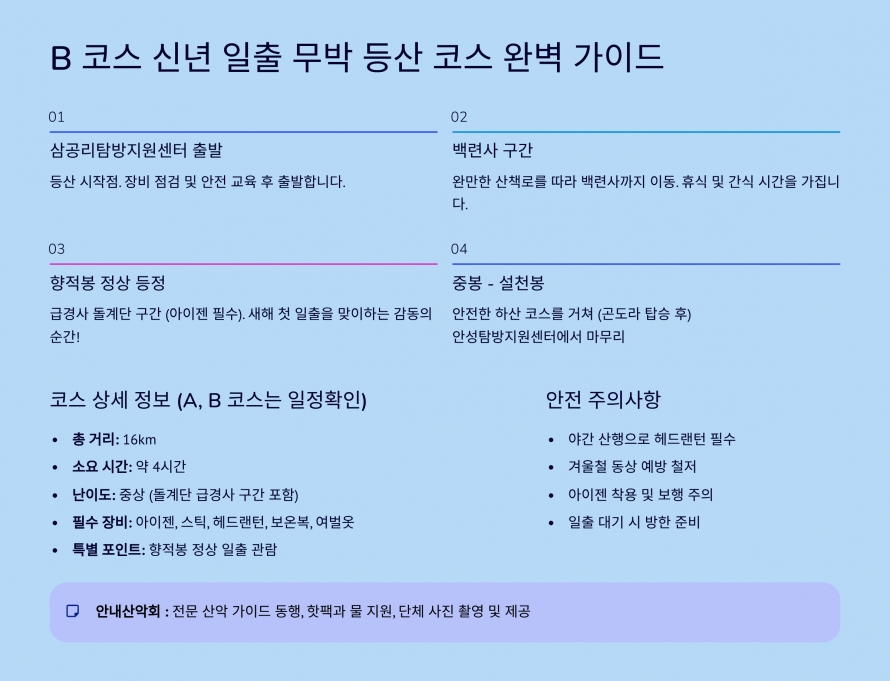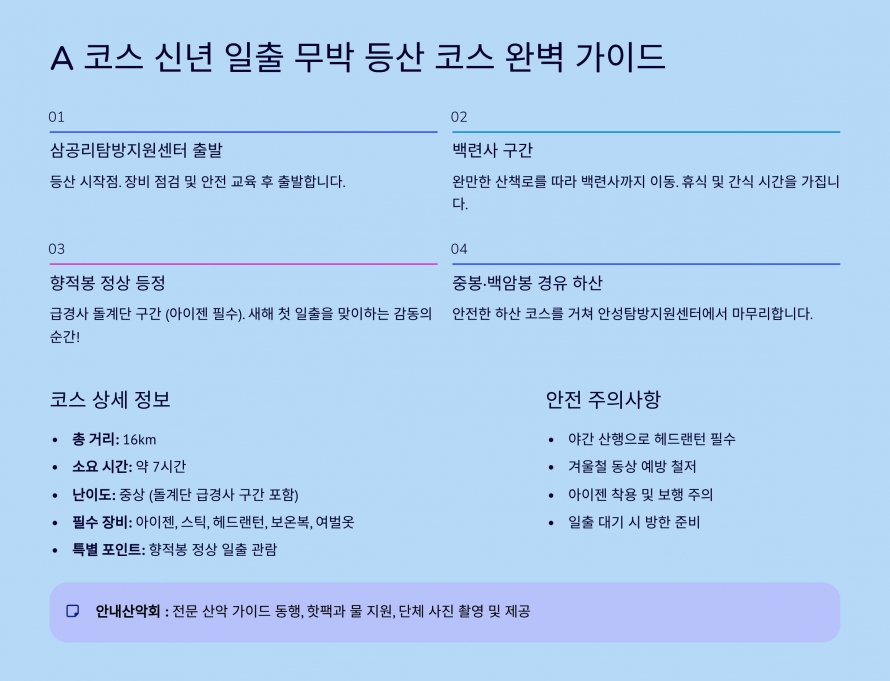 개인 구급약품, 여벌 옷, 겨울 산행 장비 |