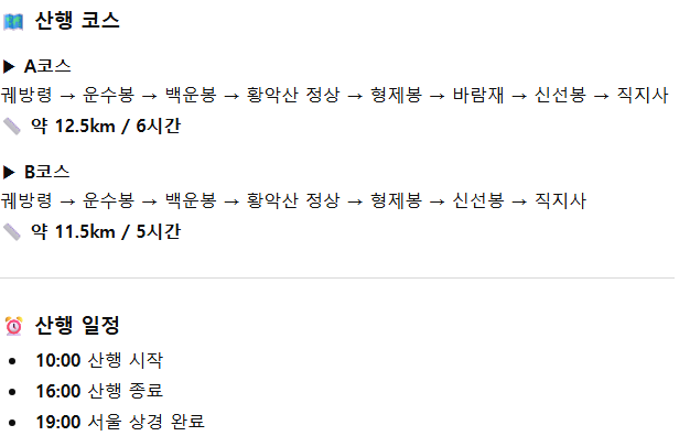 국내트레킹 일정