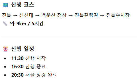 준비물 개인 구급약품, 여벌 옷, 겨울 산행 준비물 등