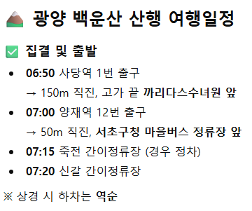 포함내역 서울 〈=〉 전남 광양시 왕복 리무진버스, 산대장(인솔자)