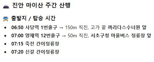 서울 〈=〉 전북 진안군 리무진버스, 산대장(인솔자)